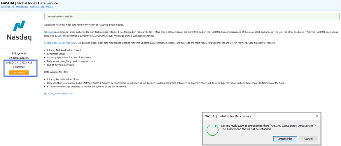 Access to live AU market data is currently a complimentary offering. This is subject to change and we'll notify you at least 30 days prior of any changes.